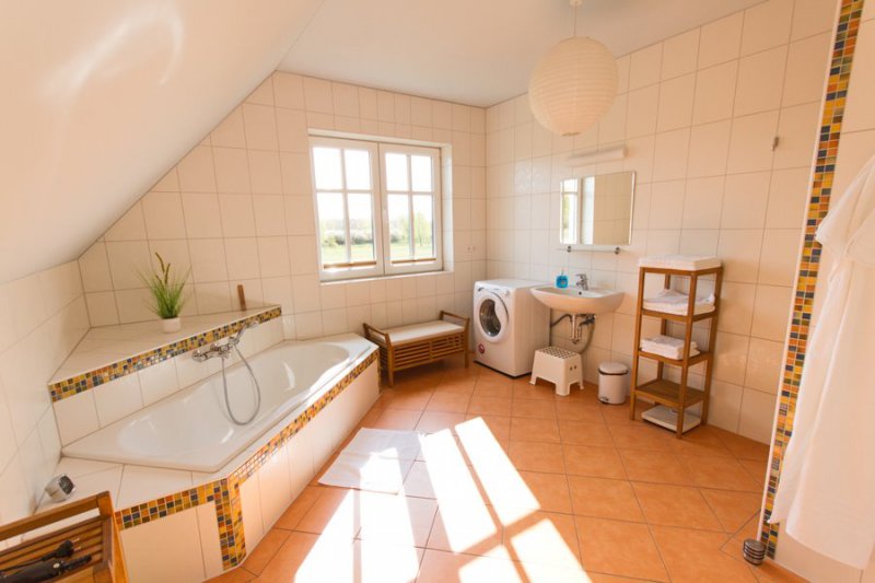 - 1.großes Bad mit Wanne, Dusche, WC und Waschbecken